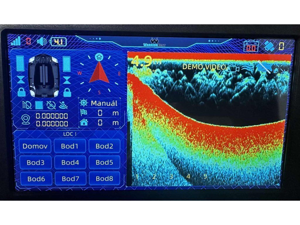 - Loďka dokáže po příjezdu na uložený bod automaticky provést požadované příkazy (komory, háčky, rozmetadlo, návrat).